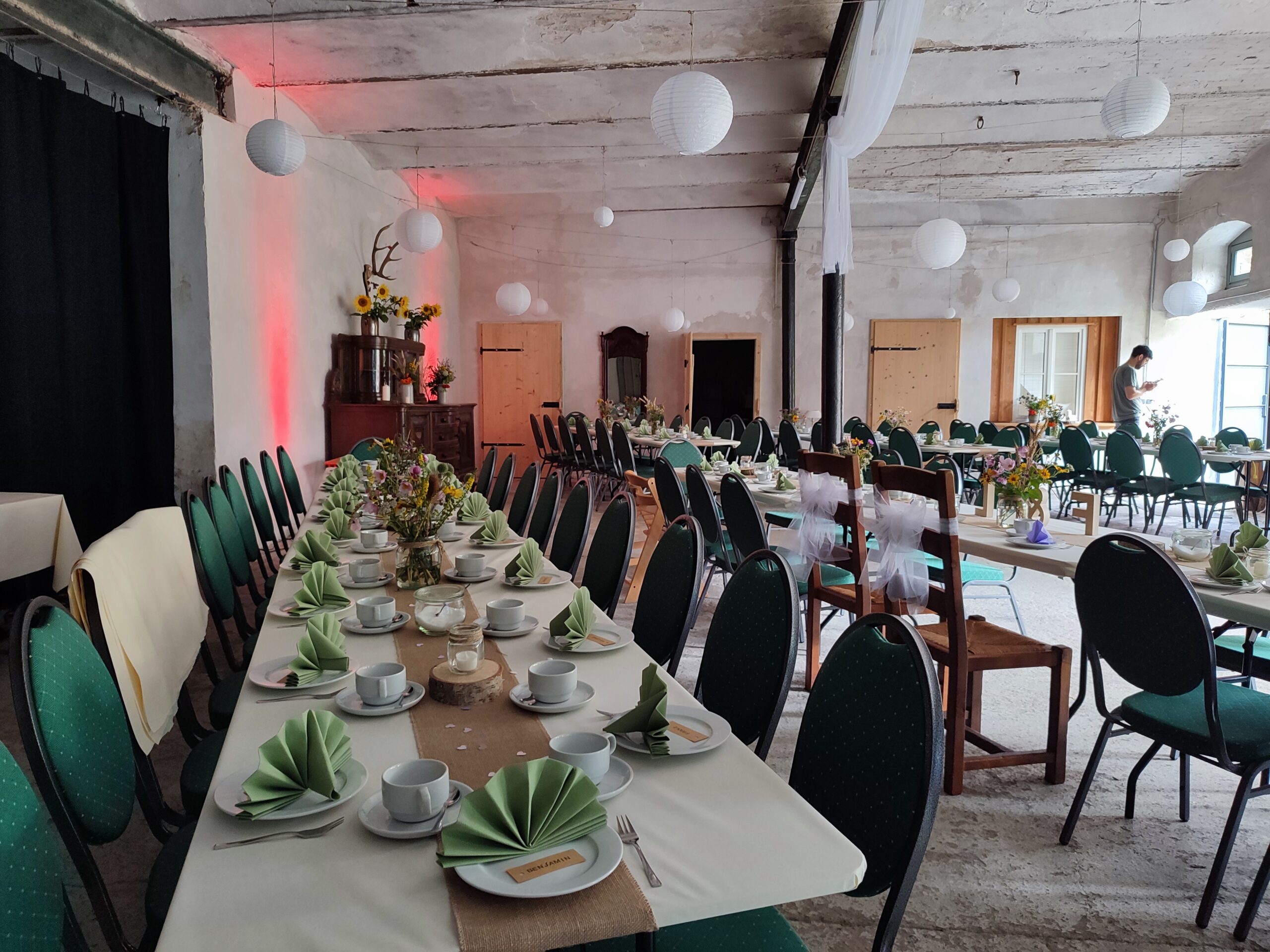 Ob romantische Zeremonie im Garten oder festliche Feier in unseren ehemaligen Ställen – wir bieten den idealen Rahmen für unvergessliche Momente.